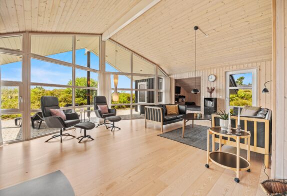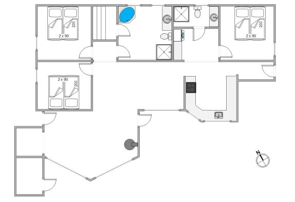 På sommerhusets i alt 143 kvadratmeter er der god plads til alle 6 feriegæster. I sommerhuset finder I hele 3 soveværelser, der alle er indrettet med dobbeltsenge. Derudover er der 2 badeværelser i sommerhuset, så I behøver ikke at bekymre jer om kø om morgenen – og takket være gulvvarmen i badeværelserne er der heller ingen risiko for kolde fødder.