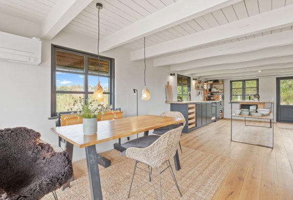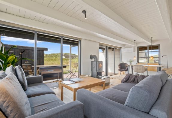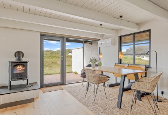 Sommerhuset på Grønsletten 8 er renoveret i 2022 og har en indbydende og rigtig hyggelig atmosfære. Familien kan samles til hyggelige filmaftener på sofaen, mens brændeovnen knitrer i baggrunden. I sommerhuset er der både Chromecast og danske tv-kanaler. I kan med fordel benytte jer af den energibesparende varmepumpe til at holde en behagelig temperatur.