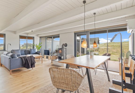 Sommerhuset ligger blot 400 meter fra den lange, hvide sandstrand ved Vesterhavet. Her kan I nyde lange gåture, bygge strandens største sandslot eller samle smukke muslingeskaller.