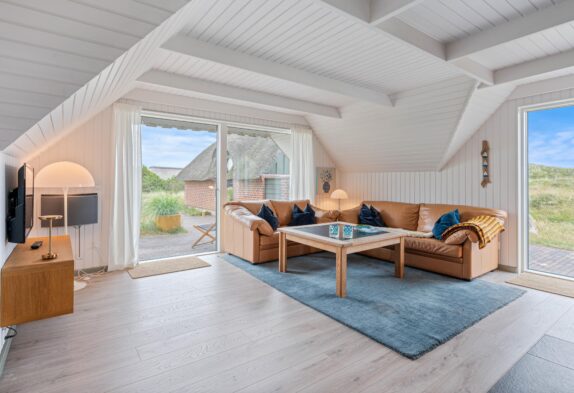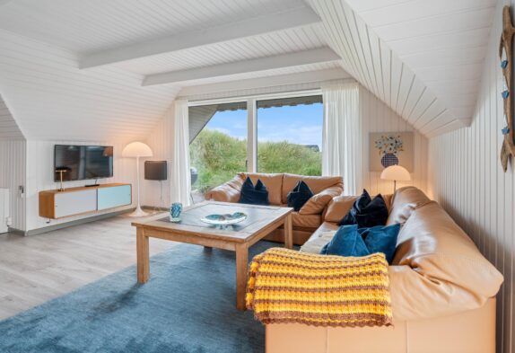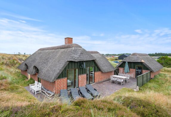 På den åbne og delvist afskærmede terrasse kan I slappe af i den friske havluft og nyde lyden af havets bølger – stranden ligger blot 400 meter fra feriehuset.