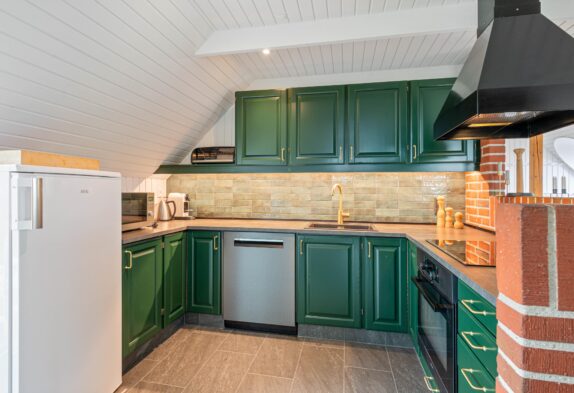 I det velholdte sommerhus venter jer en komfortabel indretning og et praktisk udstyret køkken med opvaskemaskine og mikroovn. I sommerhusets garage finder I desuden et ekstra køleskab samt fryser.