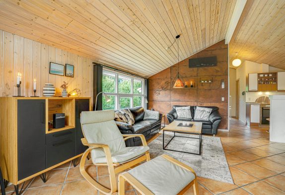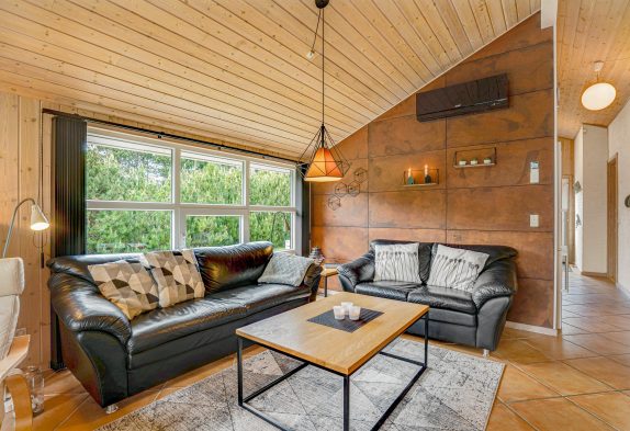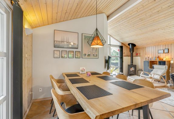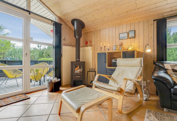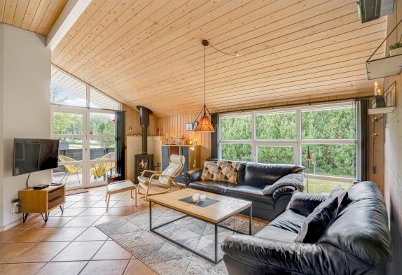 I stuen er der rigelig plads til hele familien med komfortable møbler, der inviterer til samvær og afslapning. Her kan I nyde en hyggelig aften foran brændeovnen, som spreder både varme og hygge.