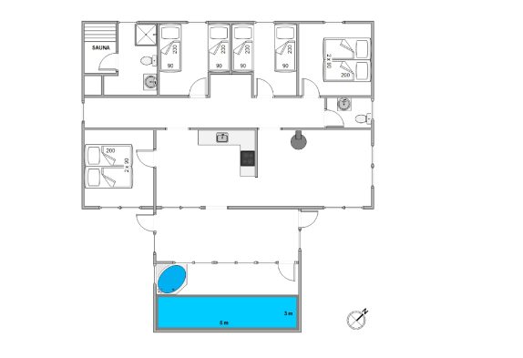 Sommerhusets absolutte highlight er det fine poolrum, hvor I finder en 15 m2 stor swimmingpool samt et spabad. Her er der plads til hele familien, hvad enten I er til afslapning eller sjov og leg. Dagen kan afsluttes med en tur i den varme sauna, som ligger ved badeværelset.