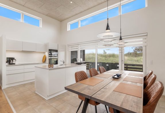 | På Hvidbjergvej 75 i Søndervig venter jer dette sommerhus, der er intet mindre end fantastisk. Det lækre feriehus inviterer op til 6 personer inden for til en ferie fyldt med afslapning. Her venter jer nemlig både en udespa og en sauna, der indbyder til afslappende stunder, samt en udebruser. Desuden har feriehuset en skøn beliggenhed kun 500 meter fra stranden og Vesterhavet. Er I kørende i el-bil, kan I lade den op ved sommerhusets ladestik til el-biler. Moderne og indbydende indretningFra det øjeblik I træder ind i det lækre sommerhus, går der ikke lang tid, før I føler jer hjemme her. Sommerhuset byder på en moderne og indbydende indretning, højt til loftet og et godt lysindfald, der tilsammen danner den helt rette ferieatmosfære. Hjertet i det lækre feriehus er alrummet, der samler køkken, spiseplads og stue. Det store, lyse rum danner rammen om hyggelige stunder på ferien med madlavning i køkkenet, spil omkring bordet og gode film i sofaen foran tv’et. Alt sammen akkompagneres af brændeovnens knitrende flammer i baggrunden, der fuldender feriestemningen. I det 120 kvadratmeter store sommerhus venter jer 3 gode soveværelser med dobbeltsenge, som I kan søge mod, når der skal samles ny energi til de kommende feriedage. Efter en god nats søvn skal I ikke bekymre jer om hverken kø eller kolde fødder takket være hele 2 badeværelser med gulvvarme. På det ene badeværelse venter jer desuden et skønt badekar. Når I holder ferie i sommerhuset på Hvidbjergvej 75, slipper I for at skulle bruge en masse tid på praktisk husarbejde. Her har I nemlig både opvaskemaskine, vaskemaskine og tørretumbler, der hjælper jer med det. Dejligt udeområde med terrasse, udespa og saunaUdendørs byder sommerhuset på et dejligt udeområde, hvor der er tænkt på både store og små, og det er derfor det oplagte sted for jer at tilbringe feriens solrige dage. På udeområdet står et gyngestativ klar, som feriens yngste gæster kan få glæde af. Imens kan I andre slappe af på terrassen, hvor I kan læne jer tilbage i havemøbler og liggestole. Desuden har I mulighed for at nyde ekstra afslapning i den skønne udespa, hvor I kan sætte jer godt til rette i det varme, boblende vand, samt i saunaen, hvor I kan nyde afslappende stunder i varmen. På terrassen har I derudover en udebruser, I kan skylle jer under. Som aftenen så småt nærmer sig, kan I gøre klar til aftensmaden, som I kan tilberede på sommerhusets gasgrill og nyde på terrassen. *udebruseren kan ikke anvendes om vinteren, grundet risiko for frostskader. De måneder hvor udebruseren ikke kan benyttes er fra november til april. Blot 500 meter til stranden fra Hvidbjergvej 75Med ferieadresse på Hvidbjergvej 75 i Søndervig bor I ikke langt fra stranden og Vesterhavet. Fra sommerhuset er der nemlig kun 500 meter til de brusende bølger og smukke sandstrande, som er værd at besøge på alle tider af året. I Søndervig finder I flere gode indkøbsmuligheder i byens supermarked og specialbutikker – den nærmeste indkøbsmulighed ligger 1 kilometer fra sommerhuset. Derudover byder byen på skønne spisesteder, hvor I kan nyde god mad og selv slippe for at stå for madlavningen. |