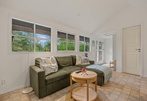 Så snart I træder inden for i det hyggelige sommerhus på Kallesmærskvej 27 i Blåvand, bliver I mødt af sommerhusets lyse og hyggelige indretning, som danner rammen om jeres ferie i Blåvand. Her er der både højt til loftet og et skønt lysindfald, der bidrager til den skønne ferieatmosfære i feriehuset.