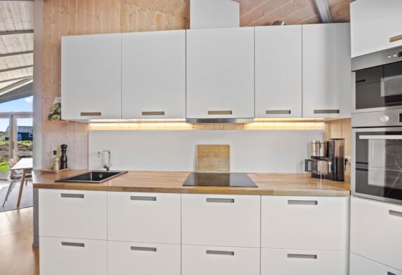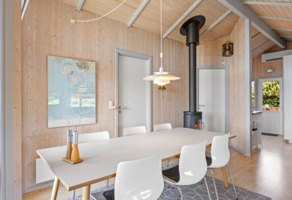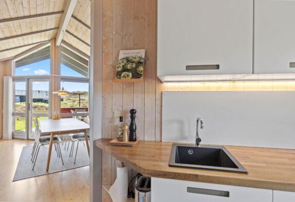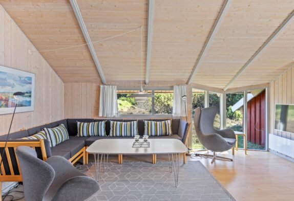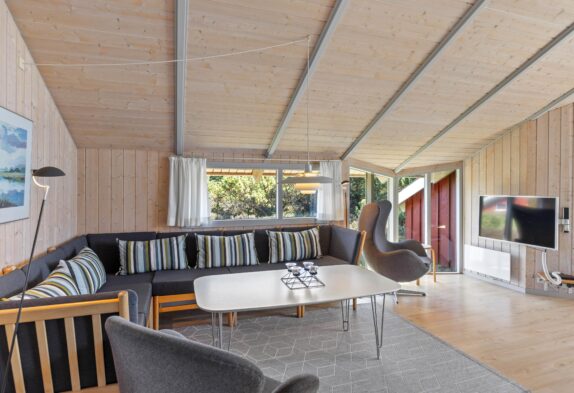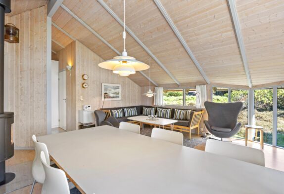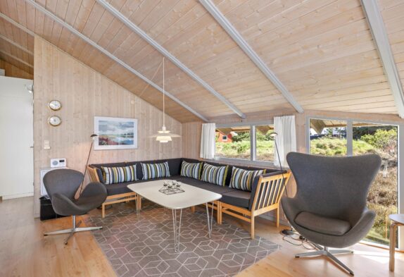 I feriehuset vil I blive mødt af en hyggelig og lys indretning, som I hurtigt vil føle jer hjemme i. De lyse vægge og lofter samt det skønne lysindfald skaber en dejlig ferieatmosfære for jer at holde ferie i.
