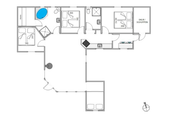 Dette feriehus er indrettet med 3 gode soveværelser, hvor I kan få jeres skønhedssøvn i løbet af ferien. Alle 3 soveværelser er indrettet med en dobbeltseng hver. Med hele 2 badeværelser i feriehuset slipper I desuden for kø fra morgenstunden.
