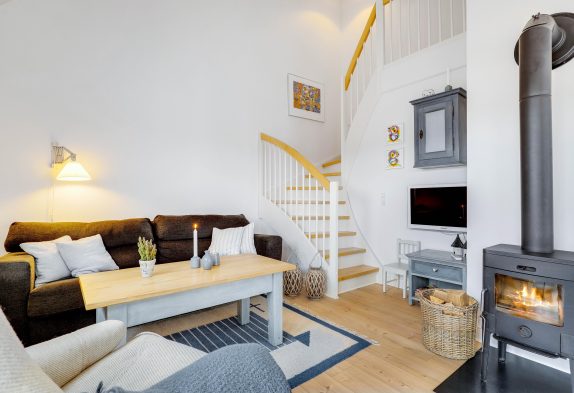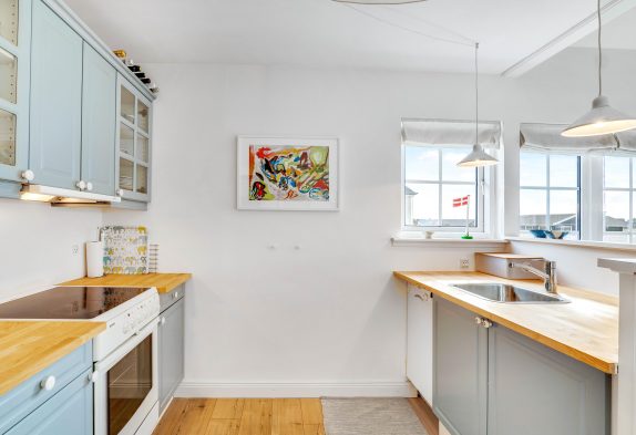 På øverste etage af ferielejligheden finder I 2 soveværelser, således at op til 4 personer kan tilbringe en skøn og afslappende ferietid her. Opvaskemaskine, vaskemaskine og tørretumbler fuldender den gode og komfortable udstyring af ferielejligheden. Mens I slapper af, sørger maskinerne for, at husholdningen ordnes.