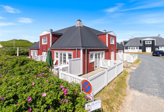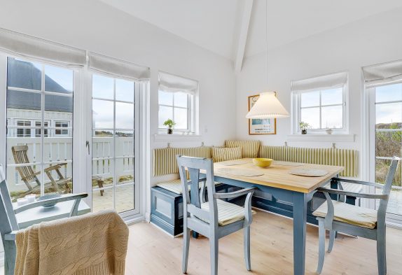 Fra opholdsstuen er der udgang til en lille lukket terrasse med havemøbler. Her kan I sidde og nyde solen og det jyske klitlandskab, mens I nyder en dejlig kop kaffe eller en kølig drink. Her står også en grill til rådighed, så I kan tilberede en skøn middag på terrassen.
