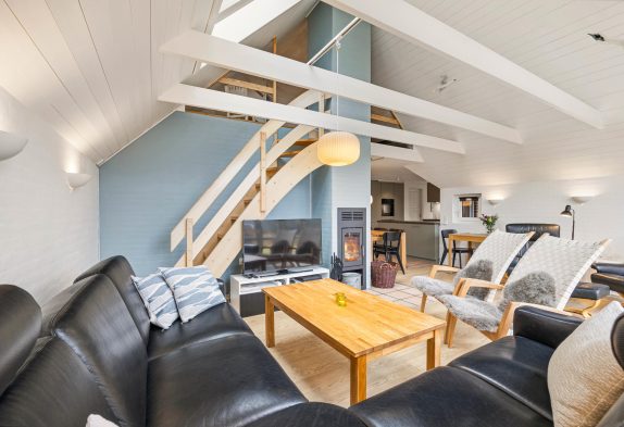 Også i stuen kan I nyde godt af gulvvarmen. Her kan I samles til hyggelige feriestunder, mens brændeovnen med sine knitrende flammer sørger for, at den hyggelige feriestemning er helt i top. Her er der også mulighed for at dyste i spil på PlayStation 4 og se film via Android TV boks eller streame via ChromeCast fra egen laptop eller smartphone.