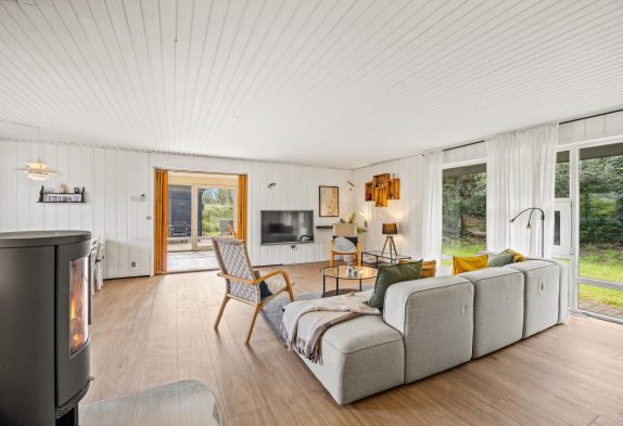 Fra alrummet kan I også træde ud i den hyggelige udestue, hvor I blandt andet kan samles til skønne måltider. Fra udestuen har I desuden en skøn udsigt til terrassen og haven.