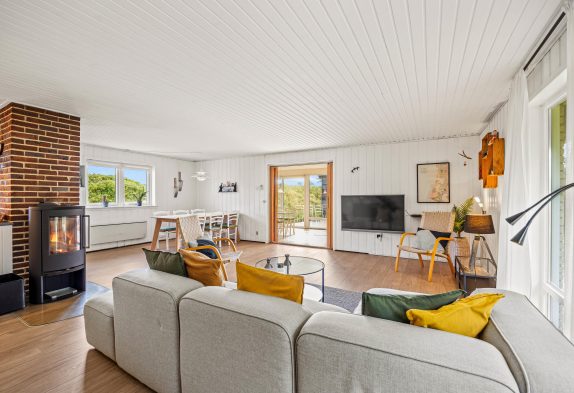 Feriehuset på Risvej 42 i Vejers byder på en hyggelig indretning, der danner rammen om jeres kommende ferie. Sommerhusets hjerte er det store alrum i stueetagen, hvor I kan samle hele ferieflokken til hyggelige stunder med spil, film og madlavning – alt sammen akkompagneret af brændeovnens knitren i baggrunden, der fuldender feriestemningen.