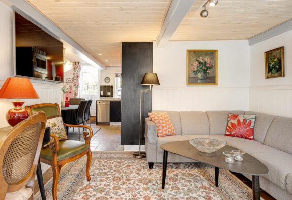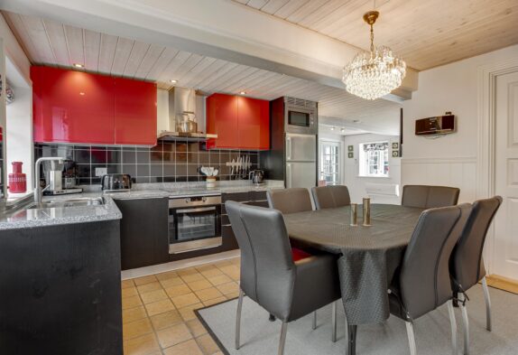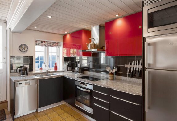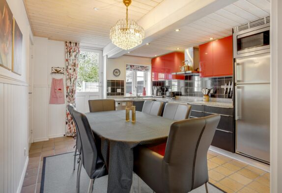 Den hyggelige ferielejlighed på Sønderbyvej 7D er renoveret i 2020 og fremstår særdeles indbydende med en gennemgående rød stil i hele lejligheden. Ferielejlighedens samlingspunkt er det fine alrum, som består af køkken, spiseplads og stue i åben forbindelse.