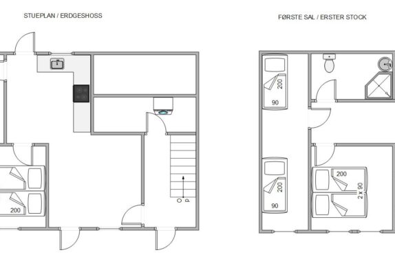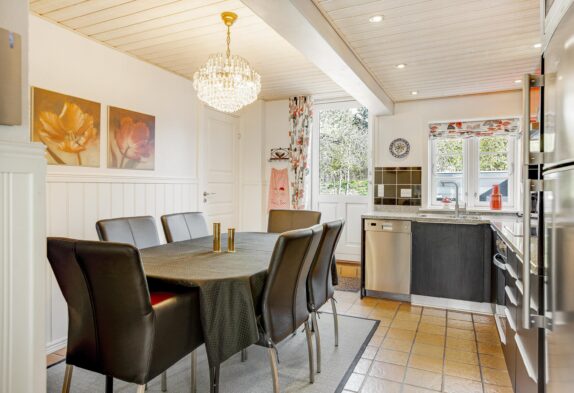 Ferielejlighedens badeværelse ligger i stueetagen, og her er der gulvvarme, så I ikke fryser fødderne. Som et ekstra plus er der et fint gæstetoilet på første salen, så der ikke opstår lang kø om morgenen.
