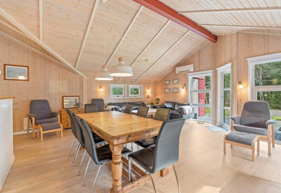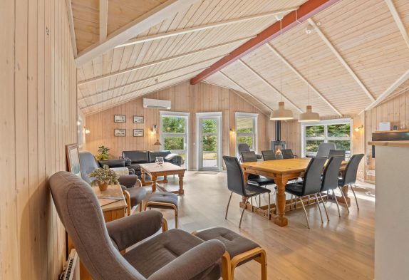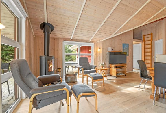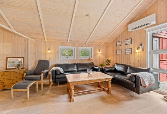 I sommerhuset vil I opleve en hyggelig indretning, som I straks vil føle jer hjemme i. Her er der et godt lysindfald og højt til loftet, der er med til at skabe den helt rette ferieatmosfære.