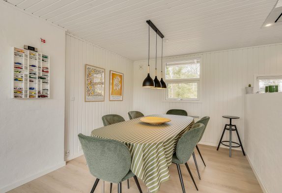 I sommerhuset på Grønnevænget 27 bliver I mødt af en lys indretning med lyse vægge og et skønt lysindfald fra vinduespartier og ovenlysvinduer, der tilsammen skaber en fantastisk ferieatmosfære. Her vil I hurtigt føle jer hjemme!
