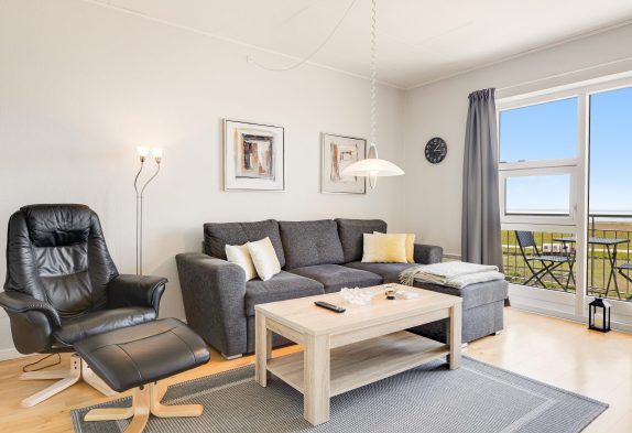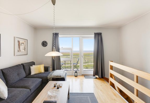 Ferielejligheden på Vadehavsvej 2 er hyggeligt indrettet, så I kan nyde en afslappende ferie med hele familien. Sæt jer godt tilpas i sofaen på 1. salen og nyd den flotte udsigt over marsken og Vadehavet.