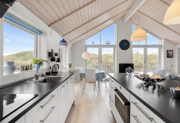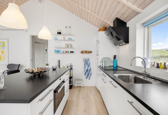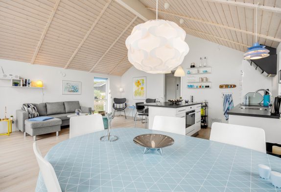 Hjertet i det 75 kvadratmeter store sommerhus er alrummet, hvor I har mulighed for at være sammen om at lave mad, spille spil og se film. Samtidig kan I også nyde hinandens selskab, selvom nogle står for madlavningen i køkkenet, mens andre slapper af foran tv’et.