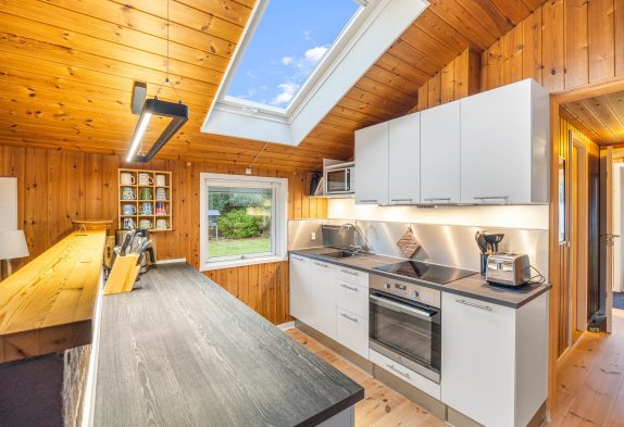 Badeværelset og køkkenet er blevet renoveret i 2022. Køkkenet har nu et fyrretræsgulv og en induktionsplade.