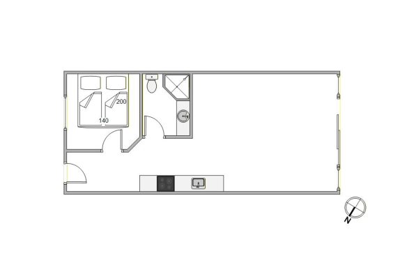 Ferielejligheden, der er 37 kvadratmeter stor, blev renoveret i 2021, og her har I et hyggeligt alrum, hvor køkken, stue og spiseplads er samlet, og hvor I kan tilbringe mange skønne feriestunder med madlavning, spil og film.