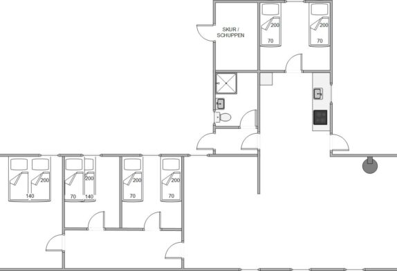 På sommerhusets 120 kvadratmeter har I desuden 4 gode soveværelser, som I kan få jeres skønhedssøvn i på ferien. 2 af soveværelserne er indrettet med en dobbeltseng hver, mens de 2 andre soveværelser er indrettet med enkeltsenge.