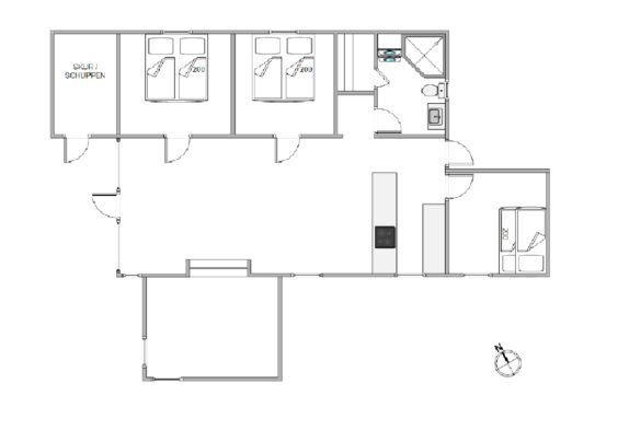 Efter en dejlig feriedag i Vejers kan I søge mod sommerhusets 3 soveværelser, hvor I kan samle ny energi til de kommende feriedage. Det ene soveværelse er indrettet med en dobbeltseng, det andet med 2 enkeltsenge og det tredje med en etageseng.