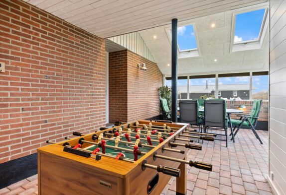 Til sommerhuset hører en god, delvist overdækket terrasse. Her kan I nyde feriedagen med hele familien og hunden. Terrassen er lukket, så I skal ikke bekymre jer om, at hunden skulle løbe væk.