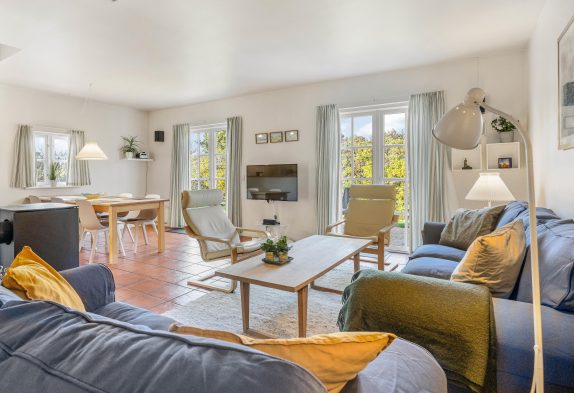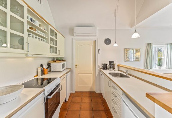 Foruden brændeovnen, der både spreder hyggelige feriestemning og varme, har I en energivenlig varmepumpe, som sørger for, at I har et godt indeklima i feriehuset. Derudover har I gode praktiske faciliteter i feriehuset i form af opvaskemaskine, vaskemaskine og tørretumbler.
