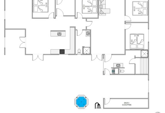 Efter en gåtur ved stranden kan I skylle jer under udendørs brusereren, inden I hopper en tur i den boblende udespa. Udendørs burseren kan benyttes fra april til november. Hvad enten det regner, sner eller solen skinner, så er det særdeles afslappende med en tur i det varme vand.