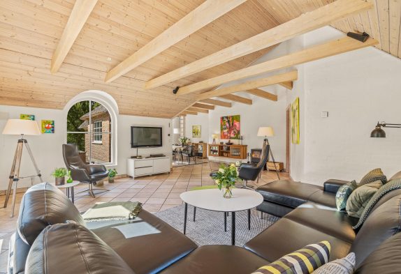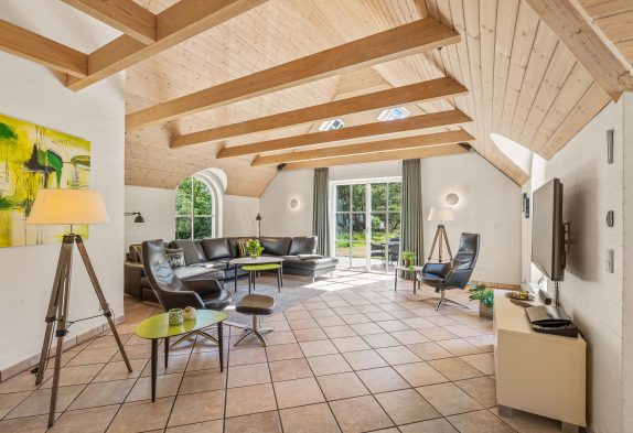 Det store samlingspunkt er utvivlsomt det hyggelige alrum med brændeovn, hvor køkkenet ligger i åben forbindelse med spisestuen og stuen. Her har I rig mulighed for at nyde hinandens selskab, selv når nogle står for madlavningen i køkkenet, og andre ser tv. På tv’et er der kun tyske kanaler, men takket være Chromecasten kan I streame jeres yndlingsfilm og -serier.