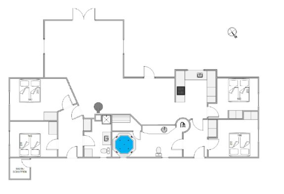 Sommerhusets helt store højdepunkter finder I på det ene af badeværelserne i feriehuset. Her venter jer nemlig et lækkert spabad og en skøn sauna, der inviterer til afslappende stunder i løbet af jeres ferie, hvor I kan komme helt ned i gear, så I kan få ladt batterierne op.