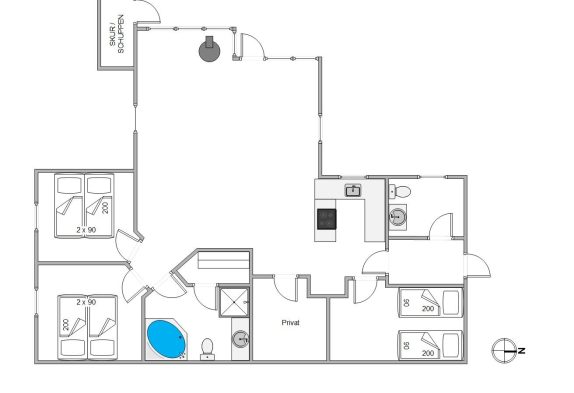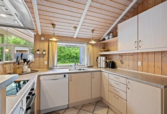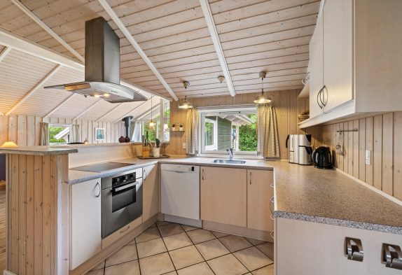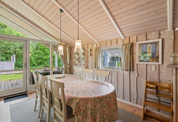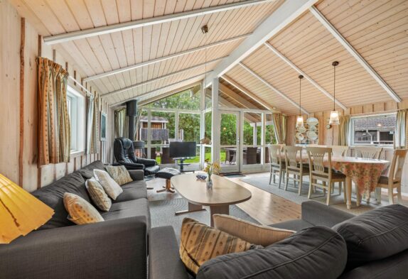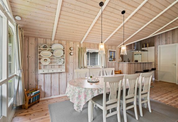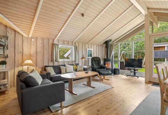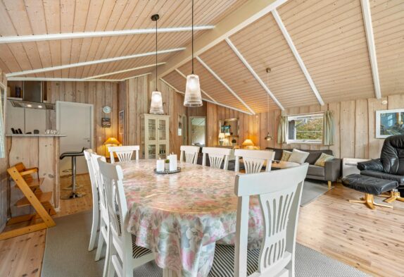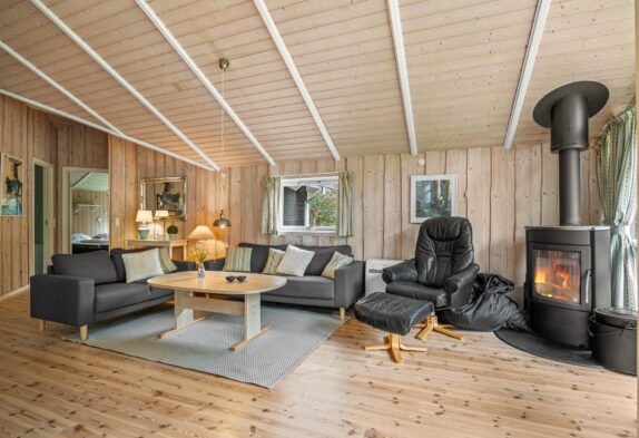 Feriehusets hjerte er alrummet, hvor I kan samles til hyggelige feriestunder med hele familien. Alrummet forener køkkenet med stue og spiseplads, og derfor kan I nyde hinandens selskab, selvom I har gang i forskellige ting i alrummet. Alt imens sørger brændeovnen for, at den hyggelige feriestemning bliver fuldendt. Desuden er der gulvvarme i alrummet, så I ikke fryser fødderne.