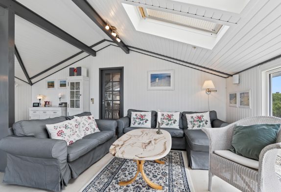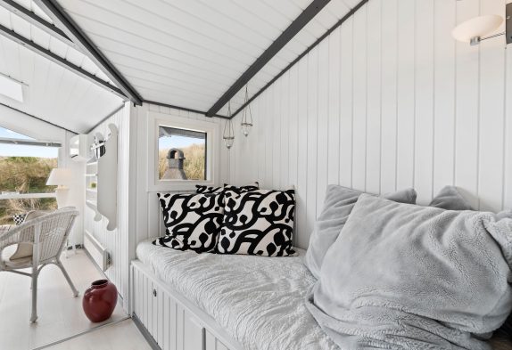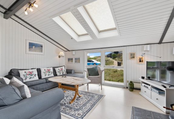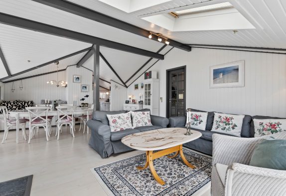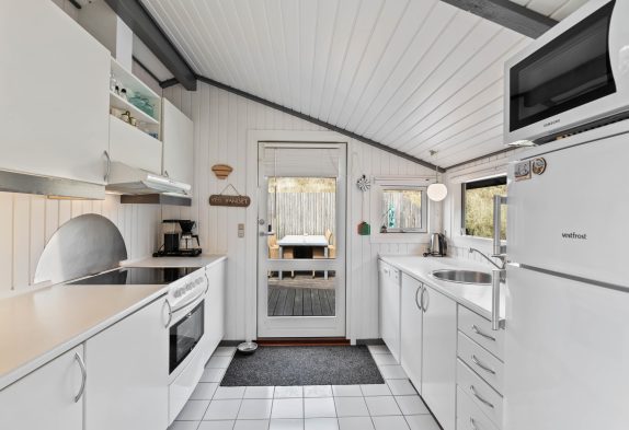 I forbindelse med det åbne og praktisk indrettede køkken finder du opholdsstuen med spiseplads. Alkoven kan fint benyttes som daybed, eller børnene kan opholde sig der, når de bliver trætte. Praktiske hjælpere som opvaskemaskine, vaskemaskine og tørretumbler gør hverdagens gøremål lettere i sommerhuset på Julianevej 71, hvilket er med til at give familien kvalitetstid sammen.