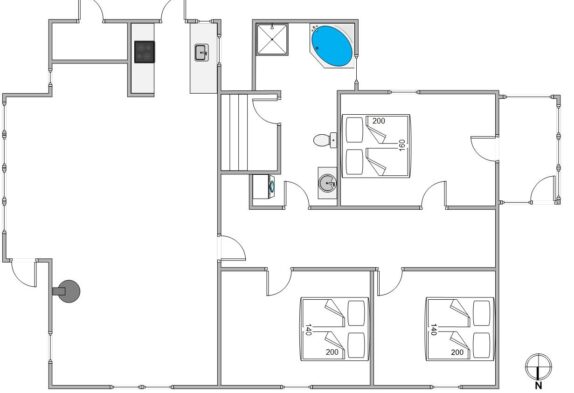 Der er dobbeltseng i hvert af de 3 soveværelser, og imens du sover i den friske luft fra Vesterhavet, kan du lade batterierne op til næste dags strabadser. I badeværelset er der gulvvarme, så du slipper for det kolde gys på den front. Efter en frisk gåtur igennem Vestkystens hede- og klitlandskab kan du rigtig slappe af i spa og sauna og lade tankerne flyve.