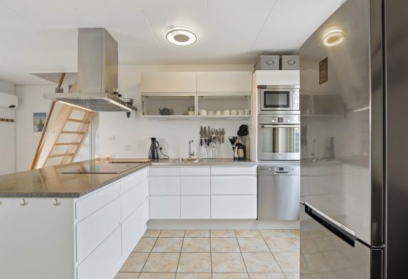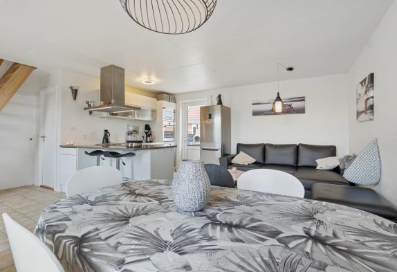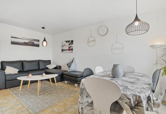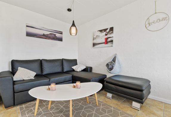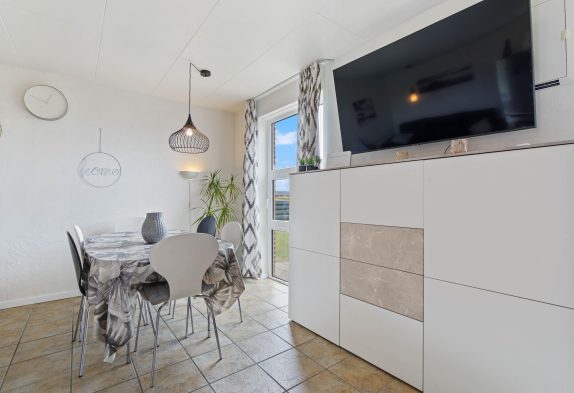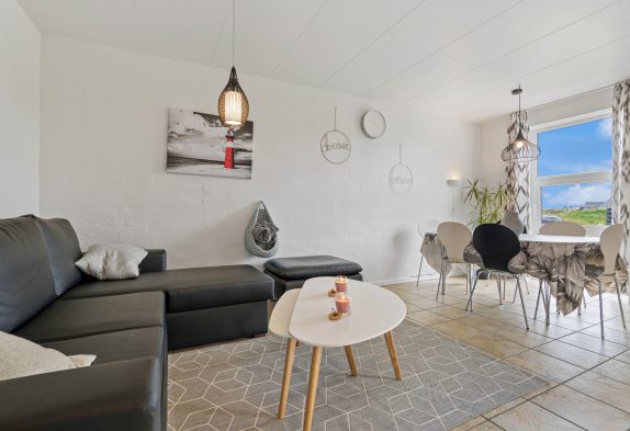 Ferielejligheden i det populære ferieområde Bjerregård byder på en hyggelig stue med gulvvarme samt varmepumpe, og her kan I for eksempel arrangere hyggelige filmaftener med børnene. I det praktisk indrettede køkken kan I sammen tilberede lækre måltider, og opvaskemaskinen klarer opvasken. Du kan fuldt ud nyde din ferie med din familie.