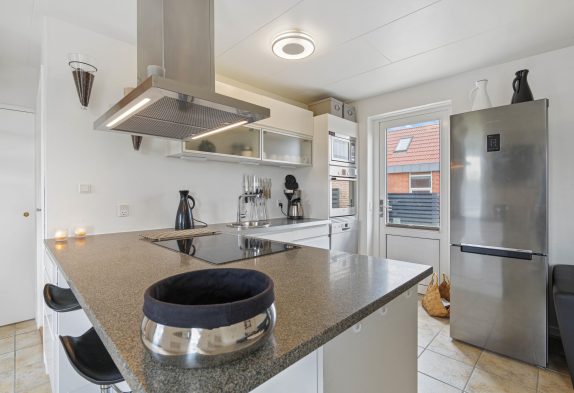 Den afskærmede, vestvendte terrasse på Arvidvej 196 giver mulighed for at afslutte de milde sommeraftener med hyggelig grillmad og et køligt glas vin, mens børnene leger og gynger på græsplænen. I solnedgangen kan du lade øjnene glide over klitterne og heden og lægge planer for den kommende dag.