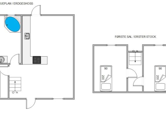 Med i alt 3 soveværelser byder ferielejligheden på plads til 4 feriegæster og 2 hunde. 2 af værelserne ligger på 1. salen, hvortil det skal bemærkes, at trappen er stejl.