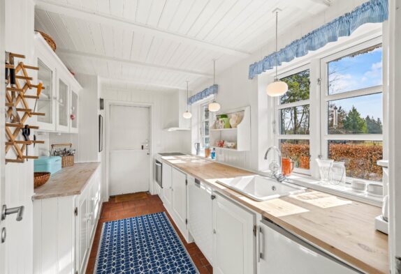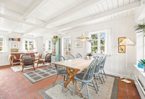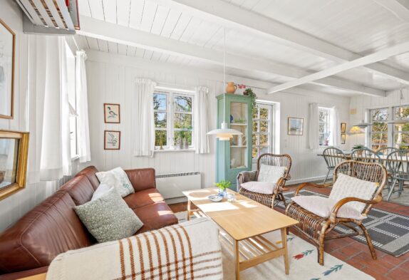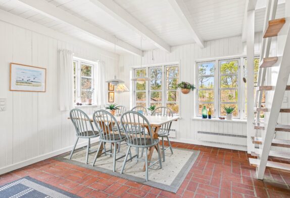 Hyg med familien eller dine venner i den lyse stue, hvor der er mulighed for at tænde op i brændeovnen, eller I kan samles om spisebordet til familiespil. Køkkenet er godt indrettet med god plads til i fællesskab at tilberede maden, trods den gennemførte smukke bondehusstil er her naturligvis alle moderne bekvemmeligheder som f.eks opvaskemaskine. På badeværelset er der gulvvarme. Her er både bruser og en 1-personers spa, der især i den koldere årstid, kan benyttes, når man kommer hjem fra en dejlig lang gåtur ved Vesterhavet.