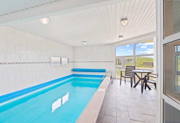 Dejligt sommerhus med ideel beliggenhed en blind vej på naturgrund, kun 350 meter fra Vesterhavet. Op til 8 personer kan få glæde af dette rummelige feriehus, som ligger midt i den vestjyske natur. Med egen wellnessafdeling og swimmingpool kan I her finde velvære både udendørs og indendørs – uanset vejret.
