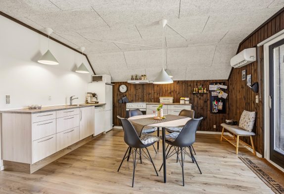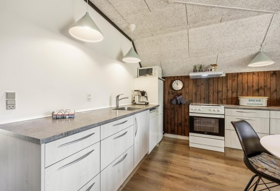 Sommerhusets hjerte er alrummet, og I vil helt sikkert tilbringe mange timer sammen her, hvor I være sammen om at se film i tv’et, spille spil omkring spisebordet og lave lækker mad i køkkenet. I køkkenet har I desuden en opvaskemaskine, der klarer opvasken for jer efter madlavningen.