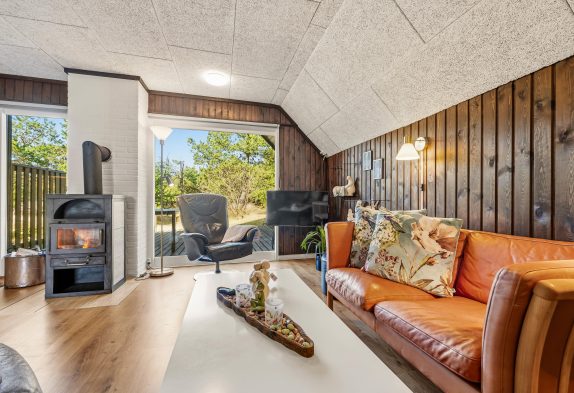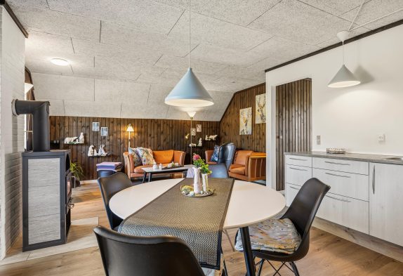 I alrummet har I også en brændeovn, som I kan tænde op i, og som fuldender den hyggelige feriestemning med sine flammer, der knitrer i baggrunden. Udover brændeovnen er der også en energivenlig varmepumpe, der sørger for, at I har et godt indeklima i feriehuset.