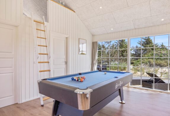 I den anden ende af sommerhuset finder I det store aktivitetsrum – her er masser af plads til leg og liv. I aktivitetsrummet finder I poolbord, playstation og diverse brætspil. Har man brug for at skærme lidt af, kan de 2 franske døre i mellemgangen lukkes.