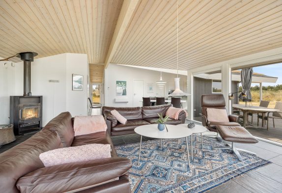 Mens I har gang i madlavning, spil og film i alrummet, sørger brændeovnen for, at feriestemningen bliver fuldendt, og at der er en dejlig varme i rummet. Derudover har I også gulvvarme i alrummet samt en energivenlig varmepumpe i feriehuset, der sørger for gode indendørs temperaturer.