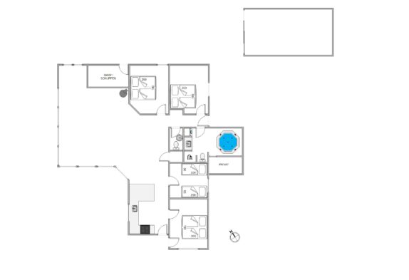 Sommerhuset er 137 kvadratmeter stort, og her venter jer 4 gode soveværelser, hvor I kan få jeres skønhedssøvn i løbet af ferien. På 3 af soveværelserne er der en dobbeltseng, og på det fjerde soveværelse er der 2 enkeltsenge. Desuden har I både et badeværelse og et gæstetoilet i feriehuset, så I slipper for kø fra morgenstunden.