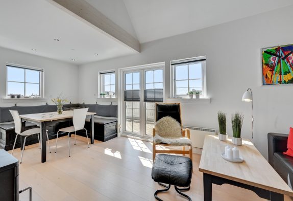 Ferielejligheden på Badevej 20 F1 i Søndervig rummer en lys indretning, som I helt sikkert kommer til at føle jer godt tilpas i. I ferielejligheden er alrummet hjertet, der danner rammen om mange hyggelige feriestunder i løbet af ferien. Her sørger brændeovnens knitren for, at feriestemningen bliver fuldendt.