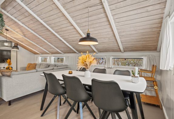 I dette klassiske sommerhus kan der bo 6 personer fordelt på 3 soveværelser, 2 værelser har enkeltsenge og 1 værelse har en dobbeltseng. Det åbne køkkenalrum inviterer til god madlavning samt hyggelige samtaler over gryder og spillekort. Huset fik renoveret køkken i 2022, som nu indeholder både opvaskemaskine og køle- og fryseskab.