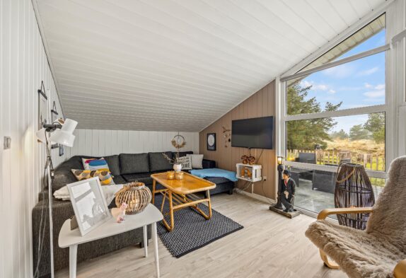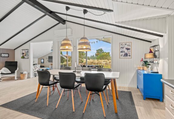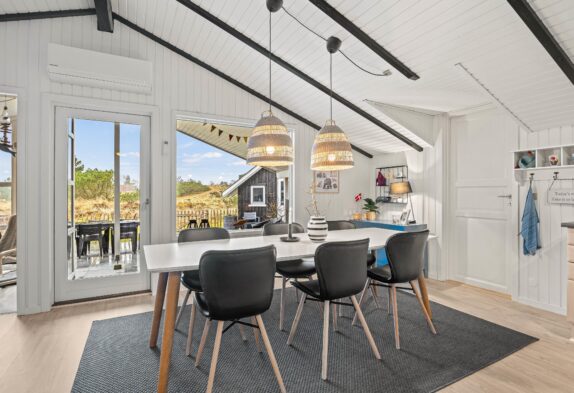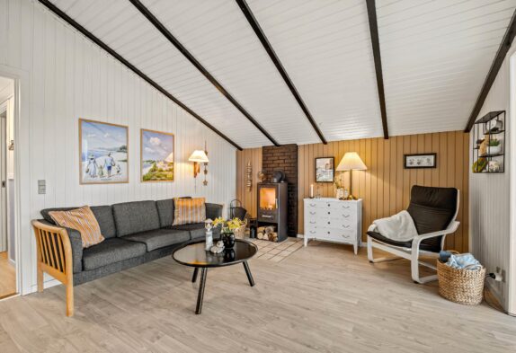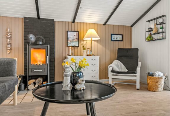 I alrummet sørger brændeovnen med sine knitrende flammer for at fuldende feriestemningen. Derudover har I også en varmepumpe i feriehuset, der sørger for et godt indeklima på energivenlig vis.