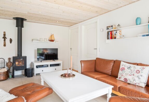 Venlig, lys og hyggelig indretning samt brændeovn og varmepumpe på Nordsøvej 225