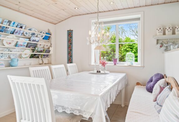 Det 75 m2 store sommerhus er et karakteristisk, typisk dansk feriehus, hvor mindre er mere – og vigtigst af alt; det skal være hyggeligt. Den lyse indretning virker indbydende, og her kan I tilbringe en dejlig ferietid sammen, enten som den lille familie eller kæresteparret, der ønsker at tilbringe et par dage ved havet.