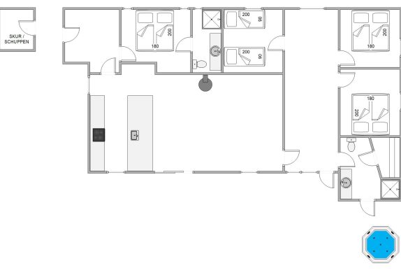 De 4 soveværelser indbyder til en afslappende nat med komfortable senge. Der er i alt 3 dobbeltsenge og 1 soveværelse med 2 enkeltsenge. Du kan opvarme dette moderne feriehus med den energiebesparende varmepumpe, og der er også en vaskemaskine samt en tørretumbler, så I altid har rene håndklæder.